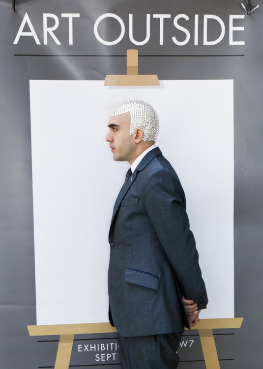 I think I know who this is, I remember reading about this guy a couple years ago, he started going prematurely bald at a young age. He decided to turn his scalp into a form of artistic expression, he has tons of these things, but sometimes he paints his head. It gets him ton of attention in the clubs.