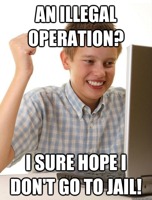 Fuck. One day I was like maybe 10 or so, messing around on the computer. I was trying to pirate BF2 or one of the earlier ones, I don't even remember and THIS SCREEN came up. I flipped out and turned off the computer. I was so freakin' scared, I didn't pirate again until I was like 14. I have no idea why they would put an error message worded like that in Windows.