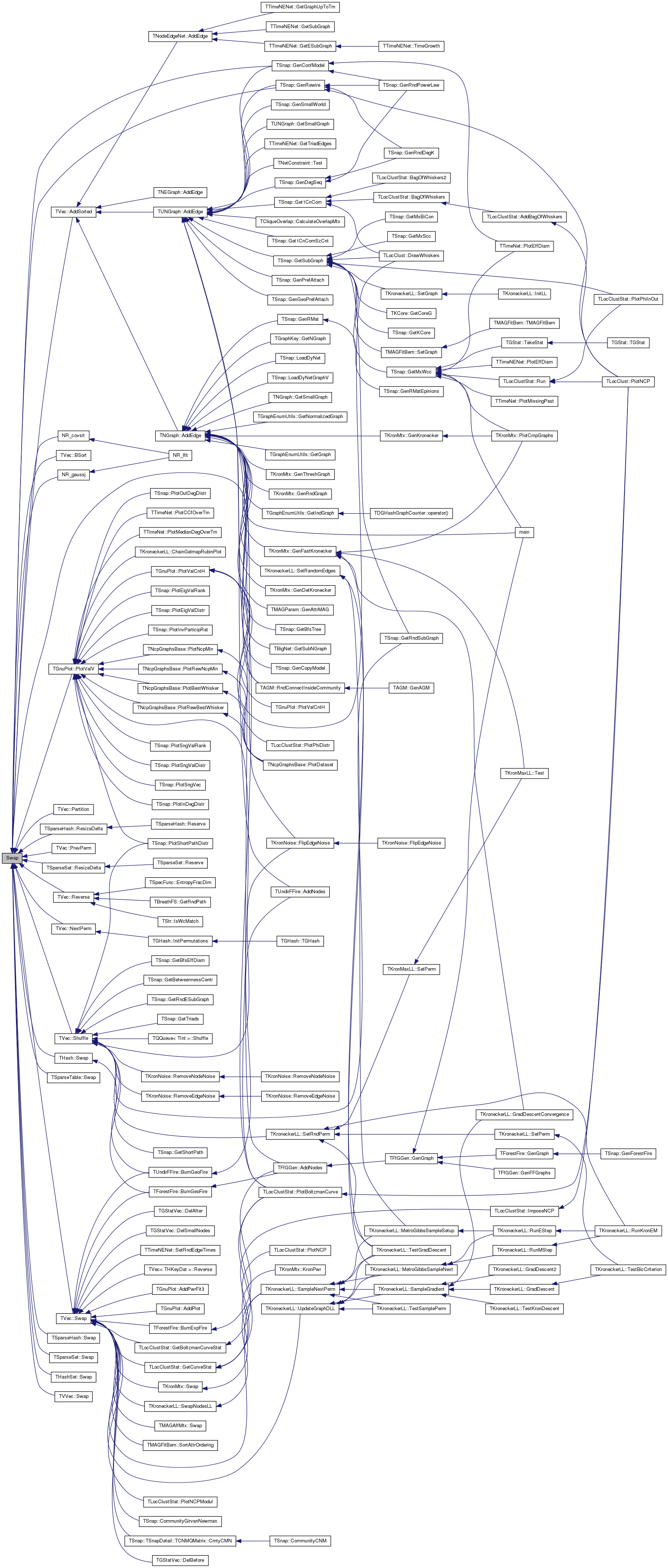 Referenced by TVec< TVal >::AddSorted(), TVec< TVal >::BSort(), TSnap::GenConfModel(), TSnap::GenRewire(), TVec< TVal >::NextPerm(), NR_covsrt(), NR_gaussj(), TVec< TVal >::Partition(), TGnuPlot::PlotValV(), TVec< TVal >::PrevPerm(), TSparseHash< TKey, TDat, GroupSize >::ResizeDelta(), TSparseSet< TKey, GroupSize >::ResizeDelta(), TVec< TVal >::Reverse(), TAGM::RndConnectInsideCommunity(), TVec< TVal >::Shuffle(), THash< TKey, TDat, THashFunc >::Swap(), TSparseTable< TVal, GroupSize >::Swap(), TVec< TVal >::Swap(), TSparseHash< TKey, TDat, GroupSize >::Swap(), TSparseSet< TKey, GroupSize >::Swap(), THashSet< TKey, THashFunc >::Swap(), and TVVec< TVal >::Swap().