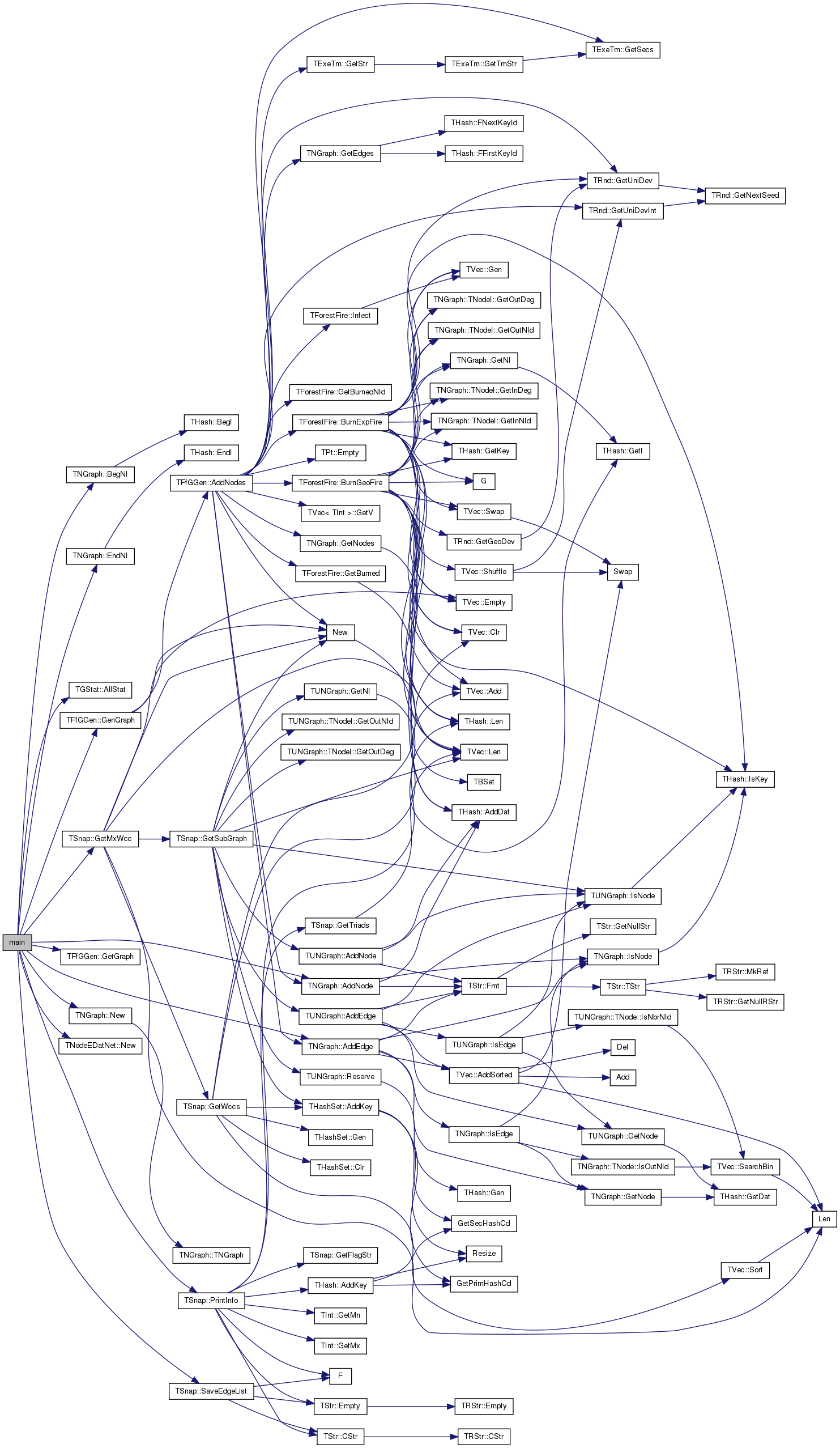 References TNGraph::AddEdge(), TNGraph::AddNode(), TGStat::AllStat(), TNGraph::BegNI(), TNGraph::EndNI(), TFfGGen::GenGraph(), TFfGGen::GetGraph(), TSnap::GetMxWcc(), TNGraph::New(), TNodeEDatNet< TNodeData, TEdgeData >::New(), TSnap::PrintInfo(), TInt::Rnd, and TSnap::SaveEdgeList().