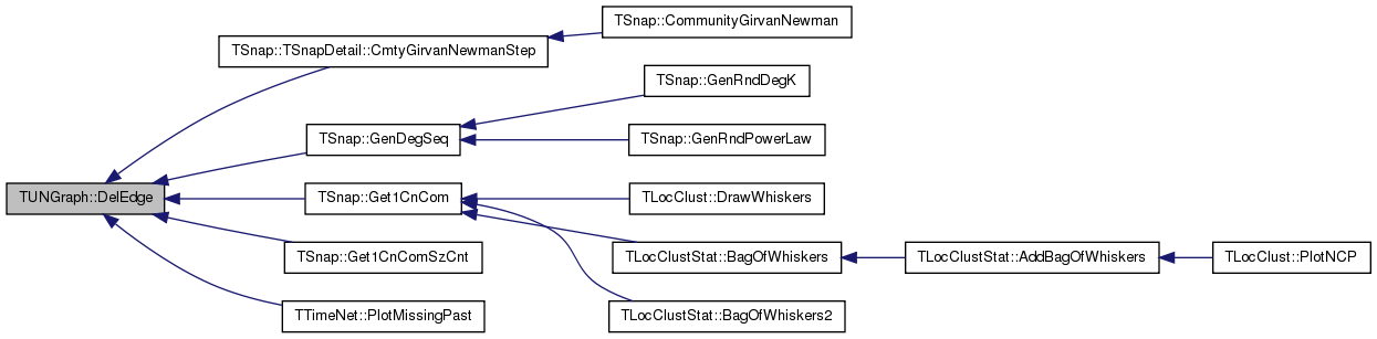 | Deletes an edge between node IDs SrcNId and DstNId from the graph. | |