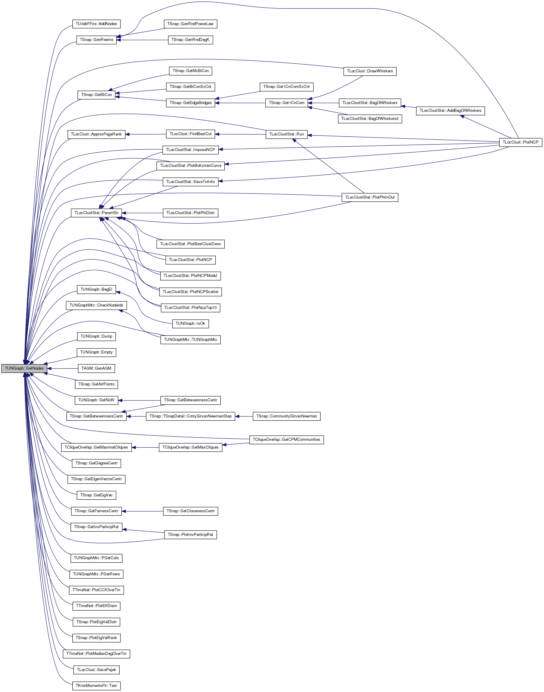 Referenced by TUndirFFire::AddNodes(), TLocClust::ApproxPageRank(), BegEI(), TUNGraphMtx::CheckNodeIds(), TLocClust::DrawWhiskers(), Dump(), Empty(), TAGM::GenAGM(), TSnap::GenRewire(), TSnap::GetArtPoints(), TSnap::GetBetweennessCentr(), TSnap::GetBiCon(), TCliqueOverlap::GetCPMCommunities(), TSnap::GetDegreeCentr(), TSnap::GetEigenVectorCentr(), TSnap::GetEigVec(), TSnap::GetFarnessCentr(), TSnap::GetInvParticipRat(), TCliqueOverlap::GetMaximalCliques(), GetNIdV(), TLocClustStat::ImposeNCP(), TLocClustStat::ParamStr(), TUNGraphMtx::PGetCols(), TUNGraphMtx::PGetRows(), TLocClustStat::PlotBoltzmanCurve(), TTimeNet::PlotCCfOverTm(), TTimeNet::PlotEffDiam(), TSnap::PlotEigValDistr(), TSnap::PlotEigValRank(), TSnap::PlotInvParticipRat(), TTimeNet::PlotMedianDegOverTm(), TLocClustStat::PlotNCP(), TLocClustStat::PlotNCPModul(), TLocClustStat::PlotNCPScatter(), TLocClustStat::PlotNcpTop10(), TLocClustStat::PlotPhiInOut(), TLocClustStat::Run(), TLocClust::SavePajek(), TLocClustStat::SaveTxtInfo(), TKronMomentsFit::Test(), and TUNGraphMtx::TUNGraphMtx().