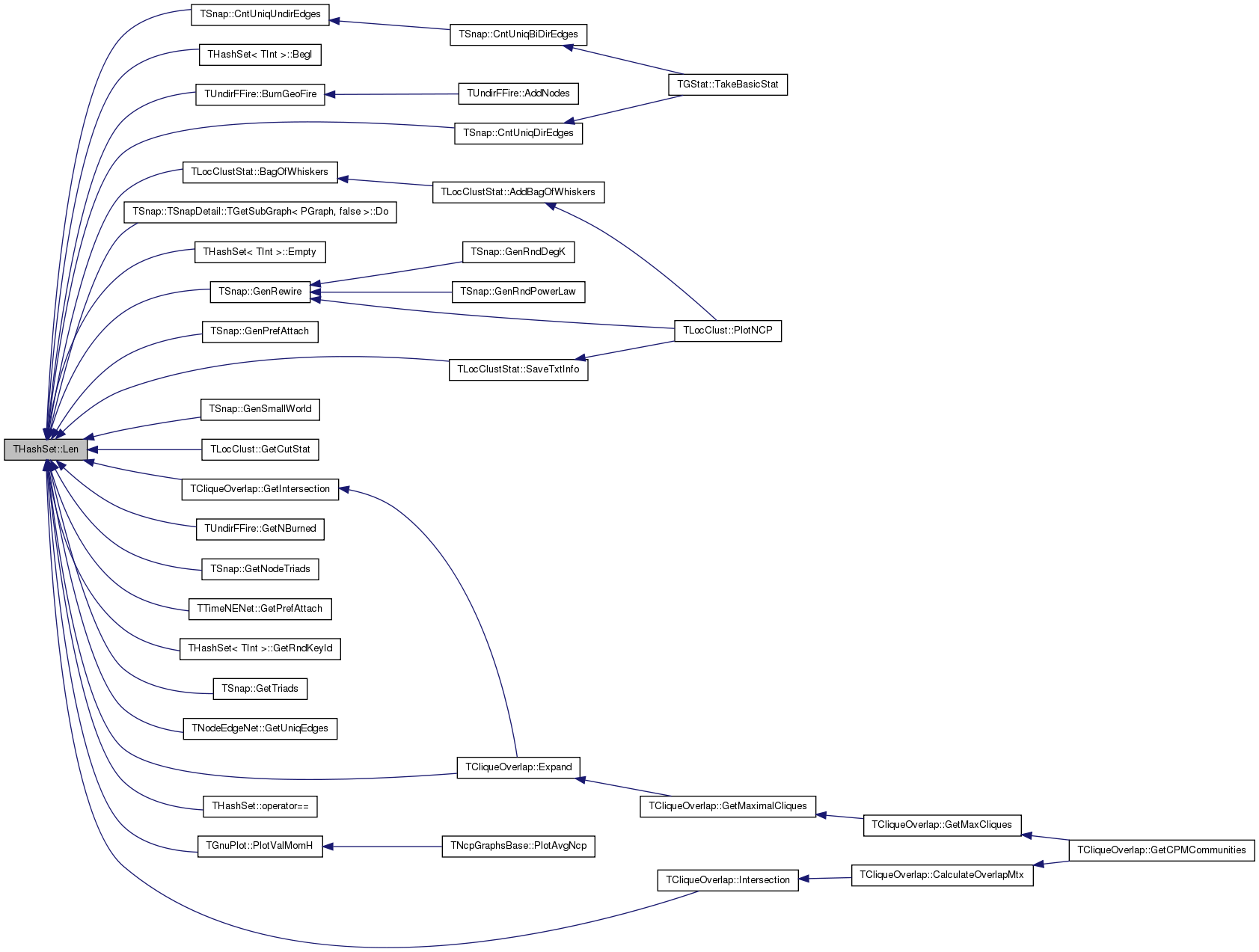 Referenced by TLocClustStat::BagOfWhiskers(), THashSet< TInt >::BegI(), TUndirFFire::BurnGeoFire(), TSnap::CntUniqDirEdges(), TSnap::CntUniqUndirEdges(), TSnap::TSnapDetail::TGetSubGraph< PGraph, false >::Do(), THashSet< TInt >::Empty(), TCliqueOverlap::Expand(), TSnap::GenPrefAttach(), TSnap::GenRewire(), TSnap::GenSmallWorld(), TLocClust::GetCutStat(), TCliqueOverlap::GetIntersection(), TUndirFFire::GetNBurned(), TSnap::GetNodeTriads(), TTimeNENet::GetPrefAttach(), THashSet< TInt >::GetRndKeyId(), TSnap::GetTriads(), TNodeEdgeNet< TNodeData, TEdgeData >::GetUniqEdges(), TCliqueOverlap::Intersection(), THashSet< TKey, THashFunc >::operator==(), TGnuPlot::PlotValMomH(), and TLocClustStat::SaveTxtInfo().