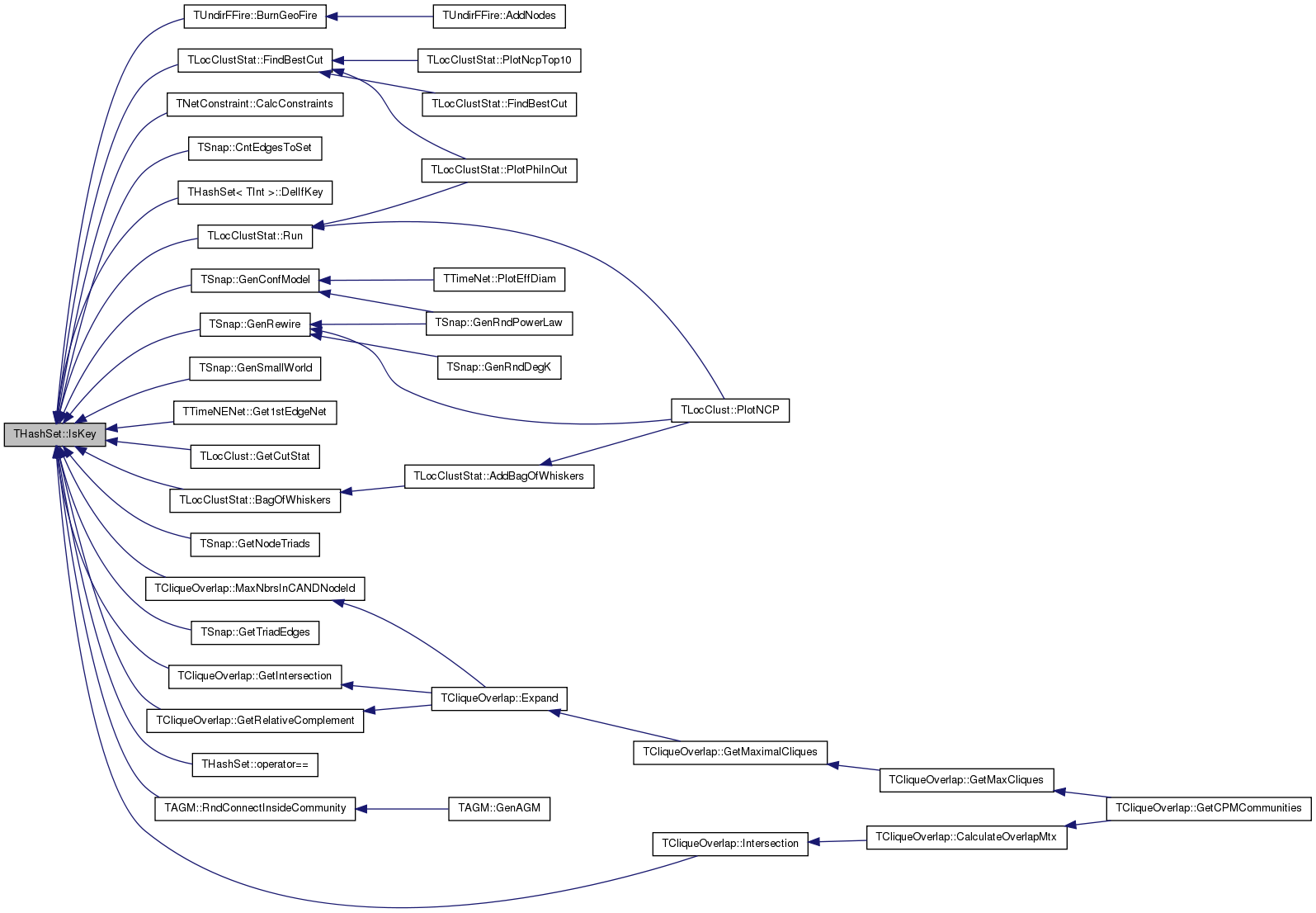 Referenced by TLocClustStat::BagOfWhiskers(), TUndirFFire::BurnGeoFire(), TNetConstraint< PGraph >::CalcConstraints(), TSnap::CntEdgesToSet(), THashSet< TInt >::DelIfKey(), TLocClustStat::FindBestCut(), TSnap::GenConfModel(), TSnap::GenRewire(), TSnap::GenSmallWorld(), TTimeNENet::Get1stEdgeNet(), TLocClust::GetCutStat(), TCliqueOverlap::GetIntersection(), TSnap::GetNodeTriads(), TCliqueOverlap::GetRelativeComplement(), TSnap::GetTriadEdges(), TCliqueOverlap::Intersection(), TCliqueOverlap::MaxNbrsInCANDNodeId(), THashSet< TKey, THashFunc >::operator==(), TAGM::RndConnectInsideCommunity(), and TLocClustStat::Run().