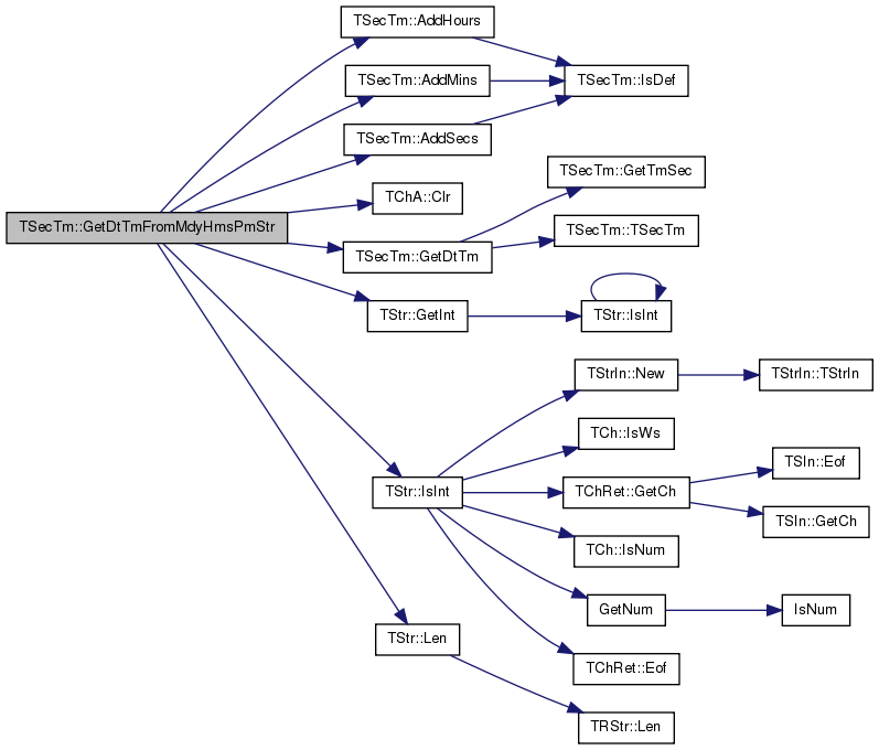 | static TSecTm | GetDtTmFromMdyHmsPmStr (const TStr &MdyHmsPmStr, const char &DateSepCh='/', const char &TimeSepCh=':') |