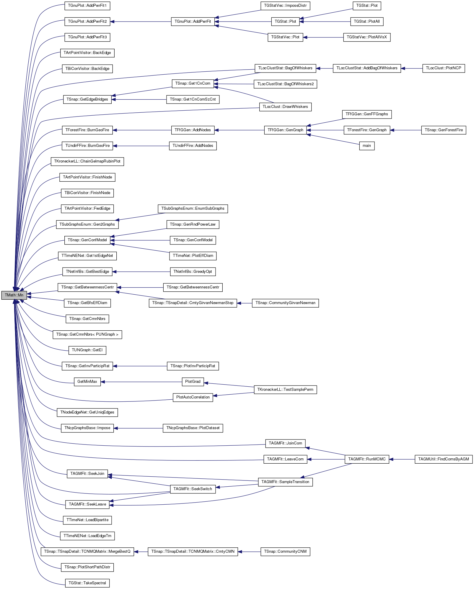 Referenced by TGnuPlot::AddPwrFit1(), TGnuPlot::AddPwrFit2(), TGnuPlot::AddPwrFit3(), TArtPointVisitor::BackEdge(), TBiConVisitor::BackEdge(), TLocClustStat::BagOfWhiskers(), TForestFire::BurnGeoFire(), TUndirFFire::BurnGeoFire(), TKroneckerLL::ChainGelmapRubinPlot(), TLocClust::DrawWhiskers(), TArtPointVisitor::FinishNode(), TBiConVisitor::FinishNode(), TArtPointVisitor::FwdEdge(), TSubGraphsEnum::Gen2Graphs(), TSnap::GenConfModel(), TTimeNENet::Get1stEdgeNet(), TNetInfBs::GetBestEdge(), TSnap::GetBetweennessCentr(), TSnap::GetBfsEffDiam(), TSnap::GetCmnNbrs(), TSnap::GetCmnNbrs< PUNGraph >(), TSnap::GetEdgeBridges(), TUNGraph::GetEI(), TSnap::GetInvParticipRat(), GetMinMax(), TNodeEdgeNet< TNodeData, TEdgeData >::GetUniqEdges(), TNcpGraphsBase::Impose(), TAGMFit::JoinCom(), TAGMFit::LeaveCom(), TTimeNet::LoadBipartite(), TTimeNENet::LoadEdgeTm(), TSnap::TSnapDetail::TCNMQMatrix::MergeBestQ(), PlotAutoCorrelation(), TSnap::PlotShortPathDistr(), TAGMFit::SeekJoin(), TAGMFit::SeekLeave(), TAGMFit::SeekSwitch(), and TGStat::TakeSpectral().
