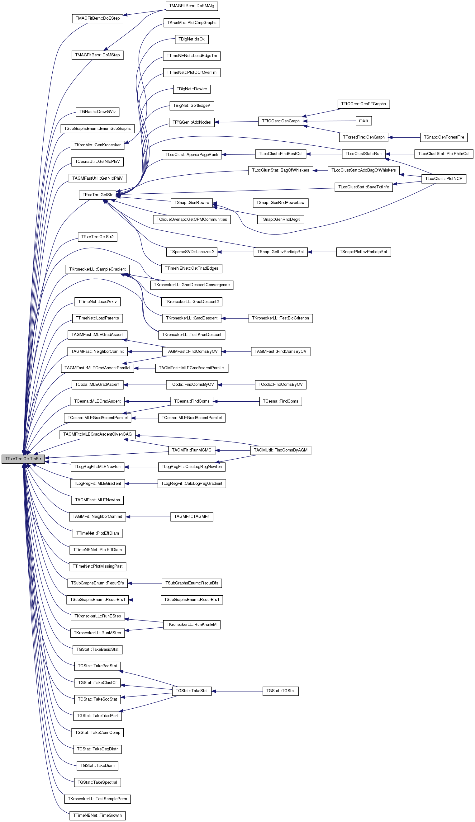 Referenced by TMAGFitBern::DoEStep(), TMAGFitBern::DoMStep(), TGHash< TDat >::DrawGViz(), TSubGraphsEnum::EnumSubGraphs(), TKronMtx::GenKronecker(), TCesnaUtil::GetNIdPhiV(), TAGMFastUtil::GetNIdPhiV(), GetStr(), GetStr2(), TKroneckerLL::GradDescentConvergence(), TTimeNet::LoadArxiv(), TTimeNet::LoadPatents(), TAGMFast::MLEGradAscent(), TCoda::MLEGradAscent(), TCesna::MLEGradAscent(), TAGMFit::MLEGradAscentGivenCAG(), TAGMFast::MLEGradAscentParallel(), TCesna::MLEGradAscentParallel(), TLogRegFit::MLEGradient(), TAGMFast::MLENewton(), TLogRegFit::MLENewton(), TAGMFast::NeighborComInit(), TAGMFit::NeighborComInit(), TTimeNet::PlotEffDiam(), TTimeNENet::PlotEffDiam(), TTimeNet::PlotMissingPast(), TSubGraphsEnum::RecurBfs(), TSubGraphsEnum::RecurBfs1(), TKroneckerLL::RunEStep(), TAGMFit::RunMCMC(), TKroneckerLL::RunMStep(), TKroneckerLL::SampleGradient(), TGStat::TakeBasicStat(), TGStat::TakeBccStat(), TGStat::TakeClustCf(), TGStat::TakeConnComp(), TGStat::TakeDegDistr(), TGStat::TakeDiam(), TGStat::TakeSccStat(), TGStat::TakeSpectral(), TGStat::TakeTriadPart(), TKroneckerLL::TestKronDescent(), TKroneckerLL::TestSamplePerm(), and TTimeNENet::TimeGrowth().