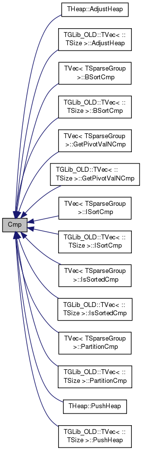 Referenced by THeap< TVal, TCmp >::AdjustHeap(), TGLib_OLD::TVec< ::TSize >::AdjustHeap(), TVec< TSparseGroup >::BSortCmp(), TGLib_OLD::TVec< ::TSize >::BSortCmp(), TVec< TSparseGroup >::GetPivotValNCmp(), TGLib_OLD::TVec< ::TSize >::GetPivotValNCmp(), TVec< TSparseGroup >::ISortCmp(), TGLib_OLD::TVec< ::TSize >::ISortCmp(), TVec< TSparseGroup >::IsSortedCmp(), TGLib_OLD::TVec< ::TSize >::IsSortedCmp(), TVec< TSparseGroup >::PartitionCmp(), TGLib_OLD::TVec< ::TSize >::PartitionCmp(), THeap< TVal, TCmp >::PushHeap(), and TGLib_OLD::TVec< ::TSize >::PushHeap().