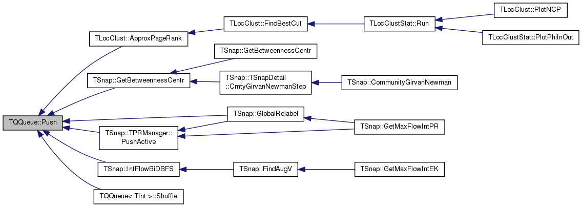 Referenced by TLocClust::ApproxPageRank(), TSnap::GetBetweennessCentr(), TSnap::GlobalRelabel(), TSnap::IntFlowBiDBFS(), TSnap::TPRManager::PopActive(), TQQueue< TInt >::Push(), and TQQueue< TInt >::Shuffle().