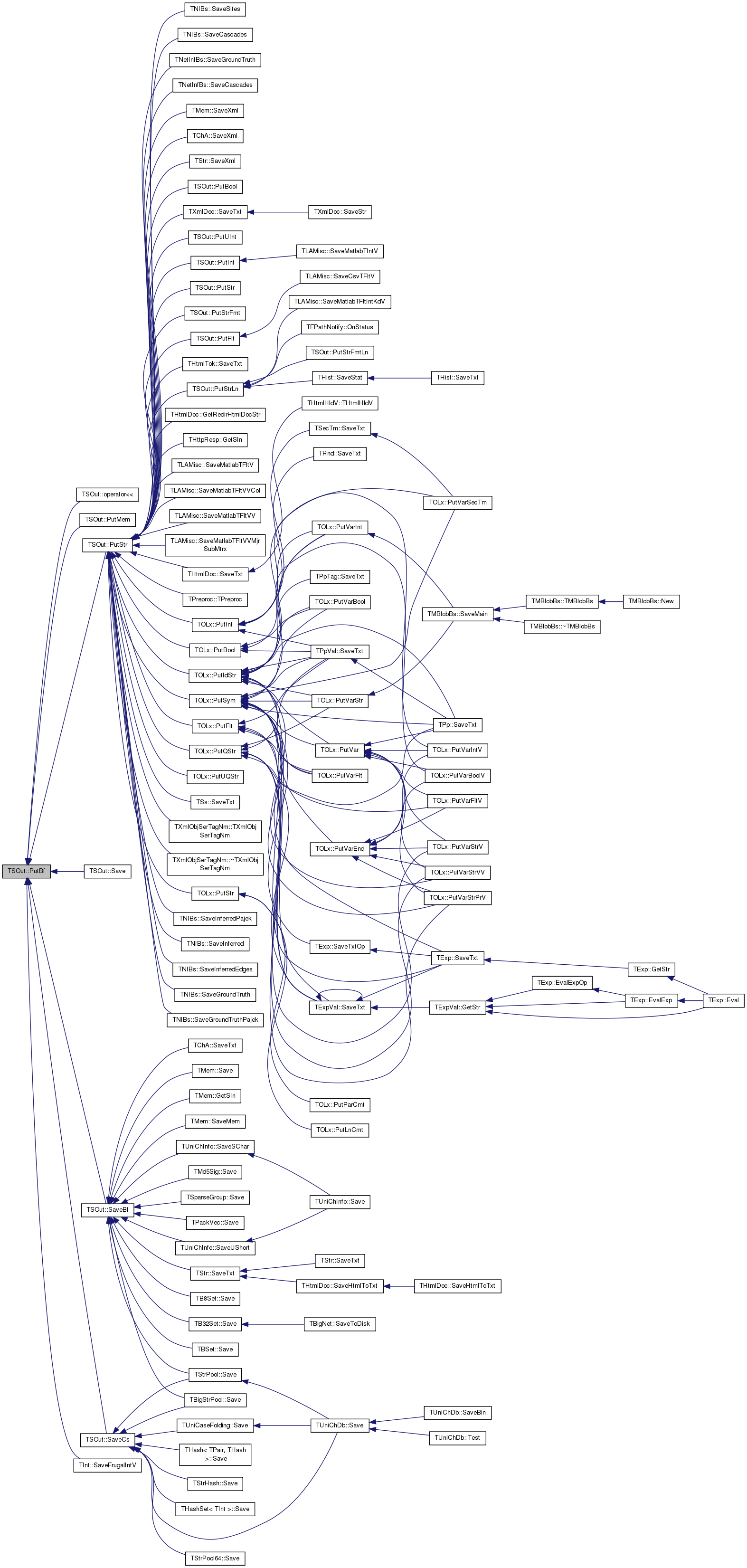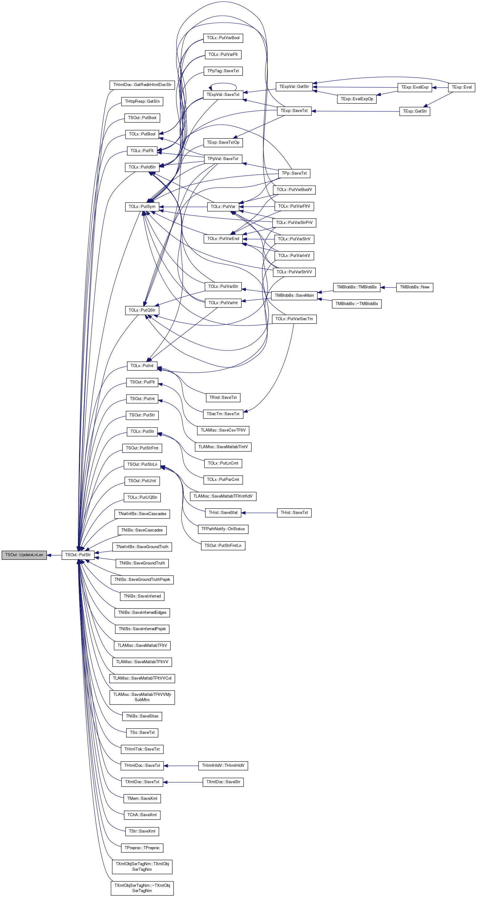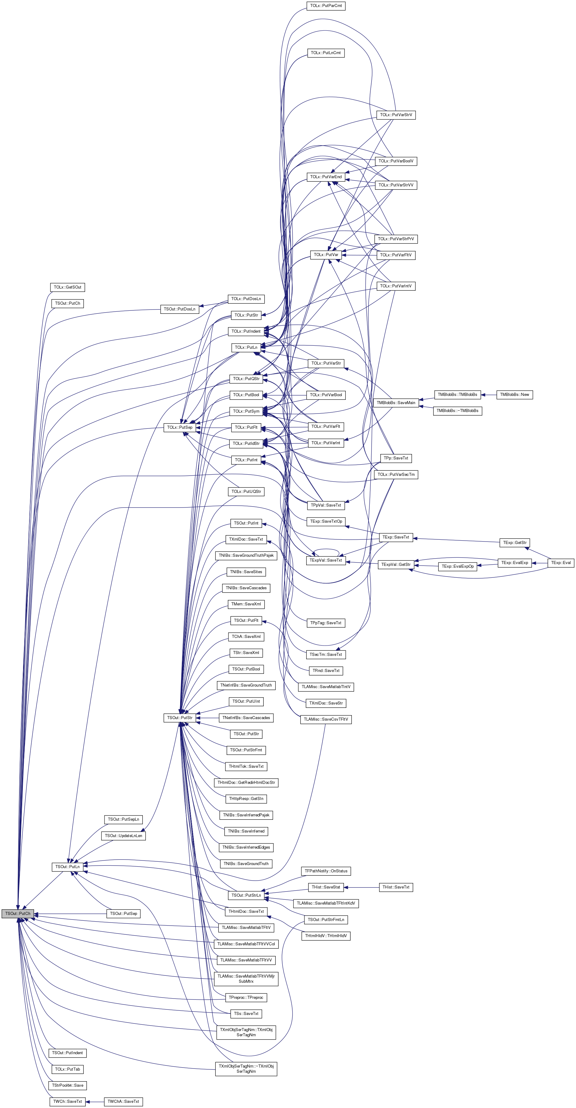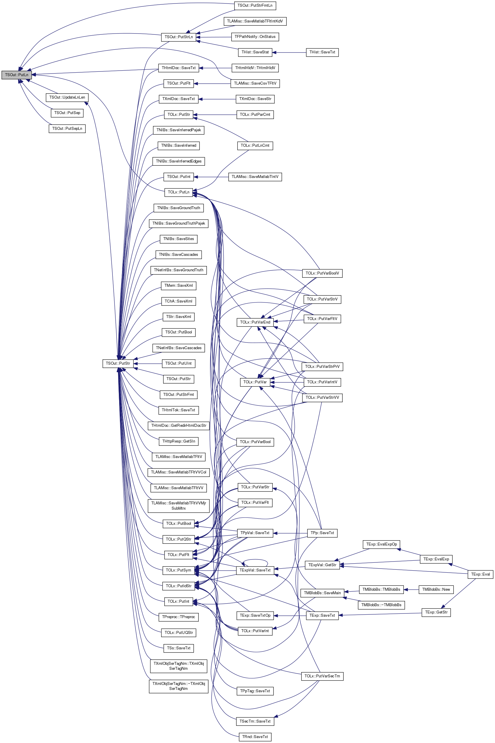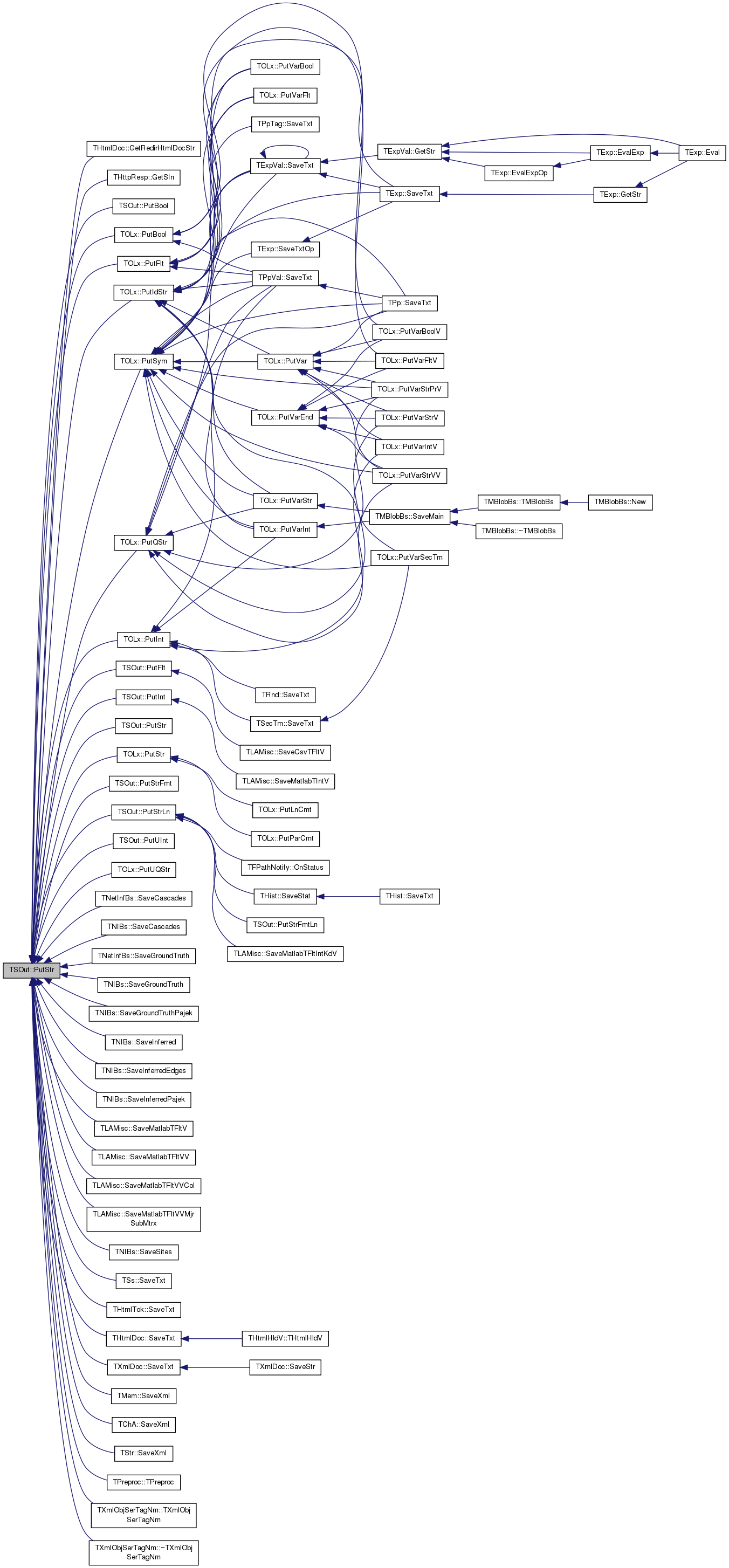 Referenced by THtmlDoc::GetRedirHtmlDocStr(), THttpResp::GetSIn(), PutBool(), TOLx::PutBool(), PutFlt(), TOLx::PutFlt(), TOLx::PutIdStr(), PutInt(), TOLx::PutInt(), TOLx::PutQStr(), PutStr(), TOLx::PutStr(), PutStrFmt(), PutStrLn(), TOLx::PutSym(), PutUInt(), TOLx::PutUQStr(), TNetInfBs::SaveCascades(), TNIBs::SaveCascades(), TNetInfBs::SaveGroundTruth(), TNIBs::SaveGroundTruth(), TNIBs::SaveGroundTruthPajek(), TNIBs::SaveInferred(), TNIBs::SaveInferredEdges(), TNIBs::SaveInferredPajek(), TLAMisc::SaveMatlabTFltV(), TLAMisc::SaveMatlabTFltVV(), TLAMisc::SaveMatlabTFltVVCol(), TLAMisc::SaveMatlabTFltVVMjrSubMtrx(), TNIBs::SaveSites(), TSs::SaveTxt(), THtmlTok::SaveTxt(), THtmlDoc::SaveTxt(), TXmlDoc::SaveTxt(), TMem::SaveXml(), TChA::SaveXml(), TStr::SaveXml(), TPreproc::TPreproc(), TXmlObjSerTagNm::TXmlObjSerTagNm(), and TXmlObjSerTagNm::~TXmlObjSerTagNm().