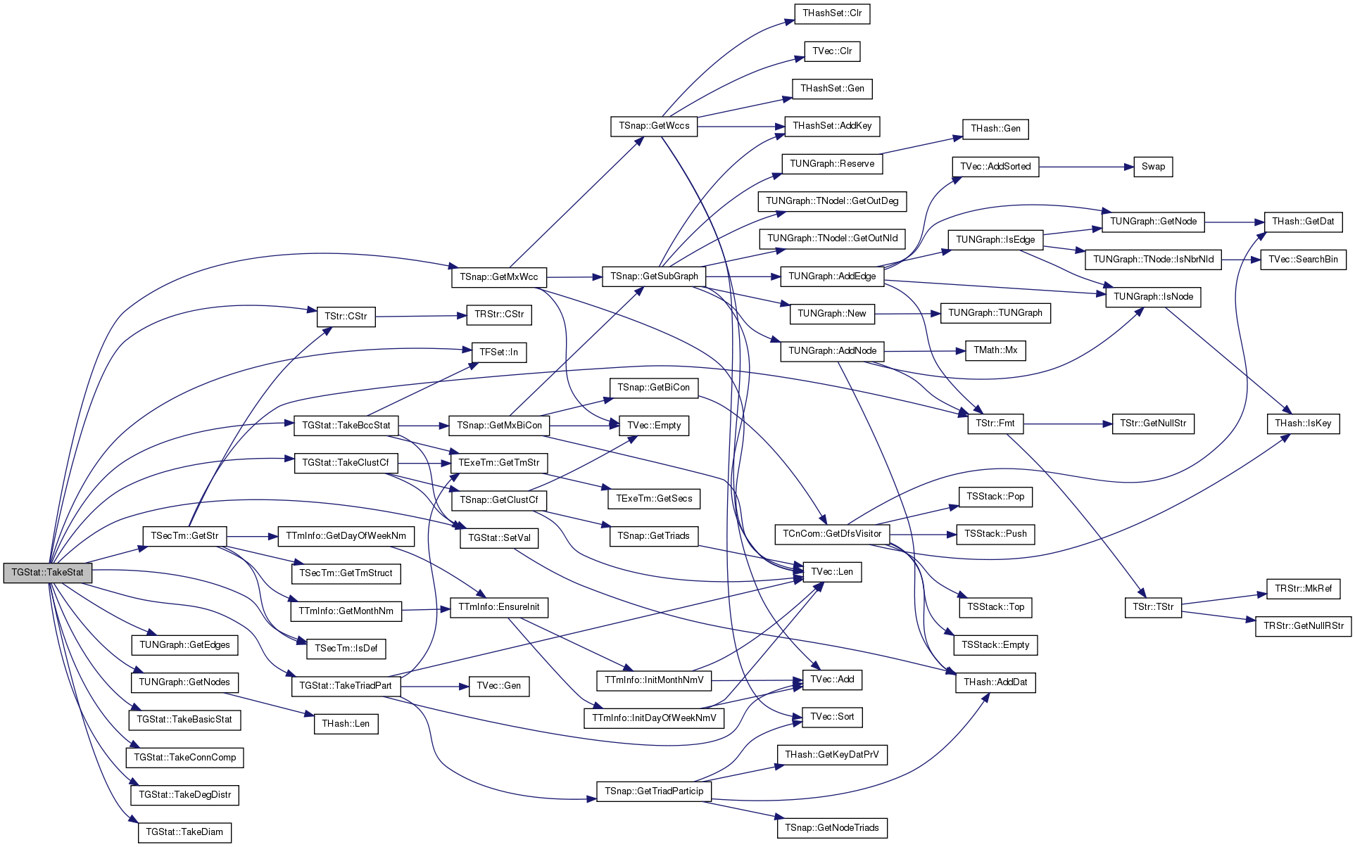 | void | TakeStat (const PGraph &Graph, const TSecTm &Time, TFSet StatFSet, const TStr &GraphName) |