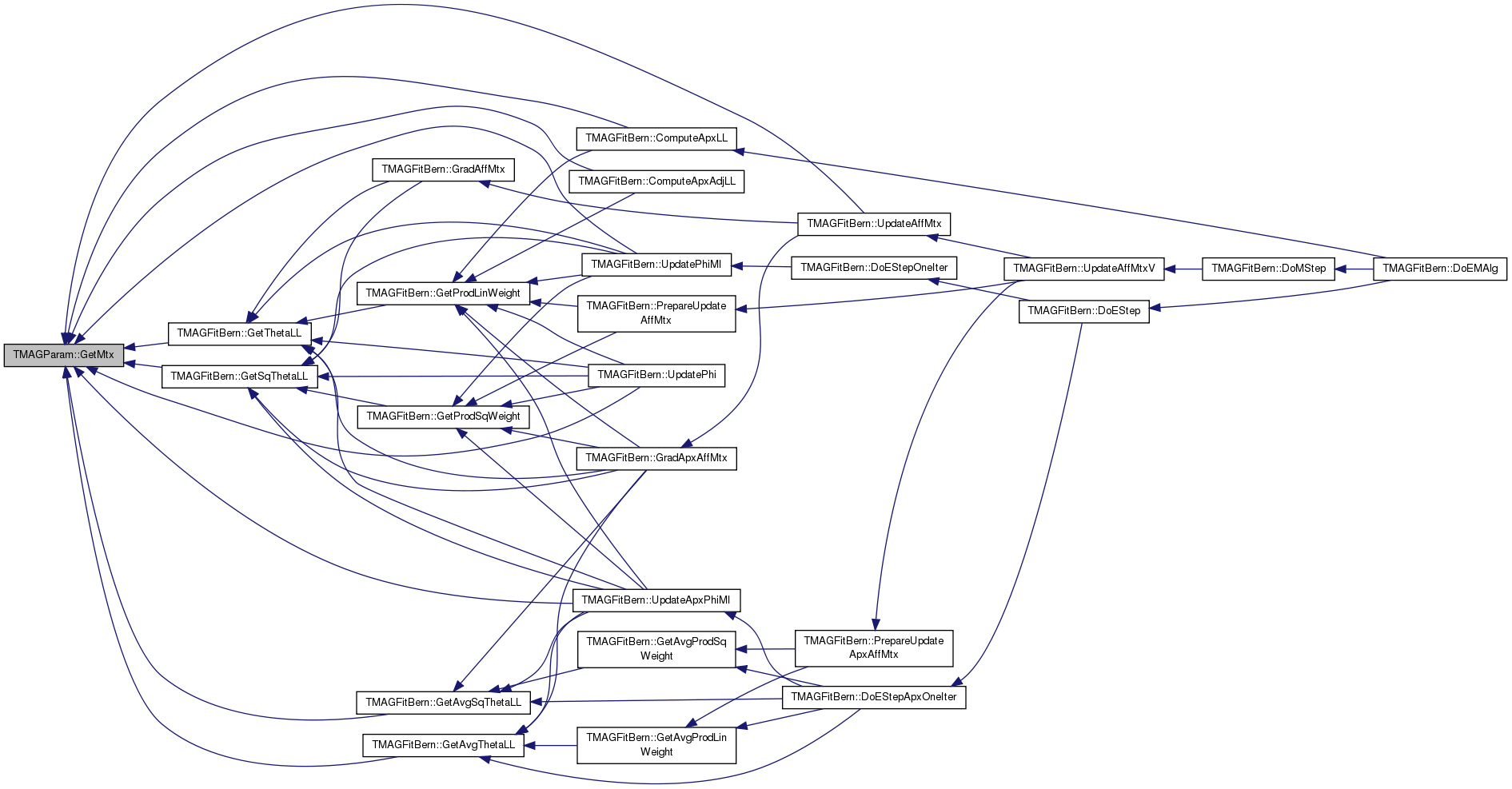 Referenced by TMAGFitBern::ComputeApxAdjLL(), TMAGFitBern::ComputeApxLL(), TMAGFitBern::GetAvgSqThetaLL(), TMAGFitBern::GetAvgThetaLL(), TMAGFitBern::GetSqThetaLL(), TMAGFitBern::GetThetaLL(), TMAGFitBern::UpdateAffMtx(), TMAGFitBern::UpdateApxPhiMI(), TMAGFitBern::UpdatePhi(), and TMAGFitBern::UpdatePhiMI().