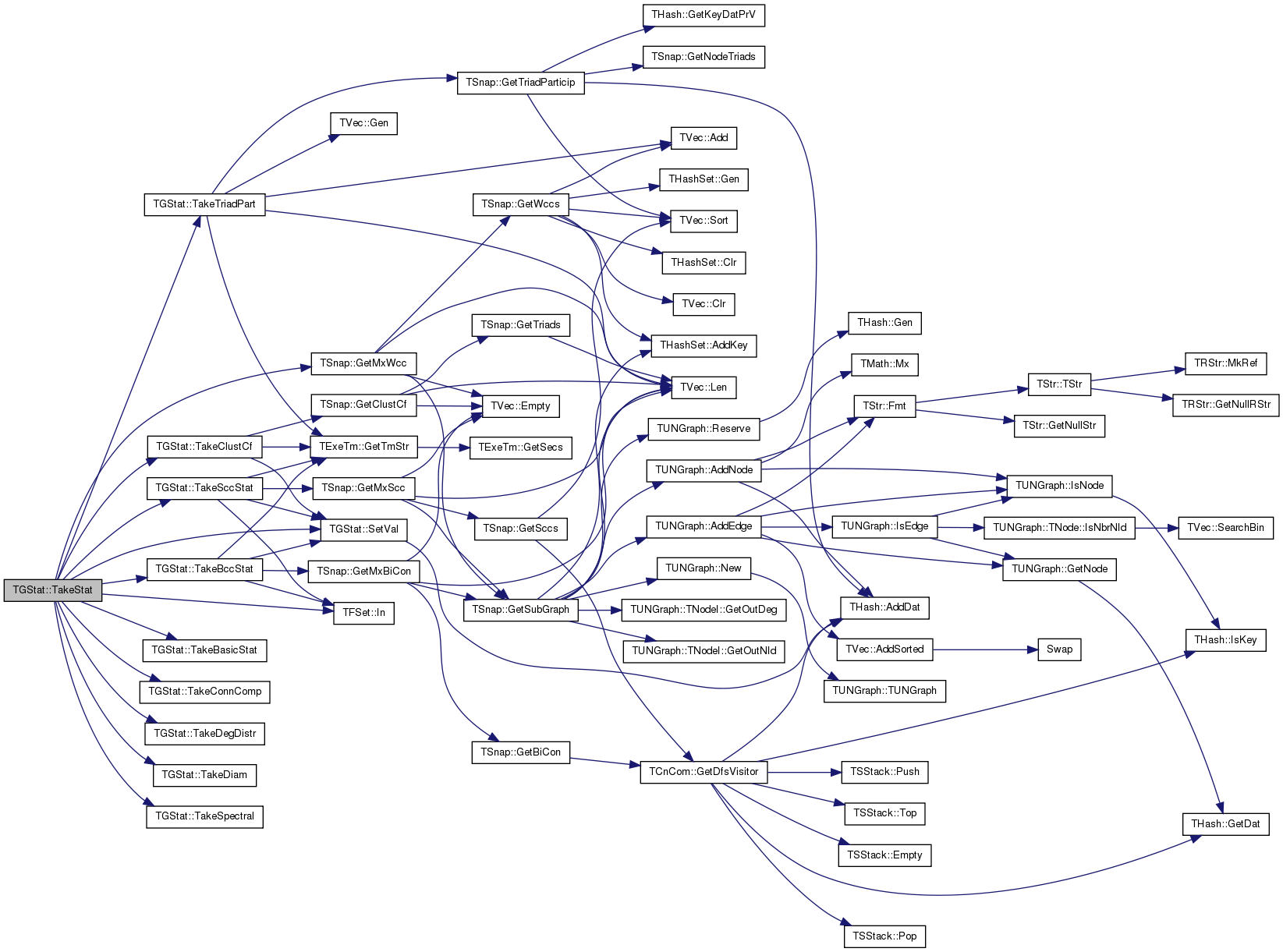 | void | TakeStat (const PGraph &Graph, const TSecTm &Time, TFSet StatFSet, const TStr &GraphName) |