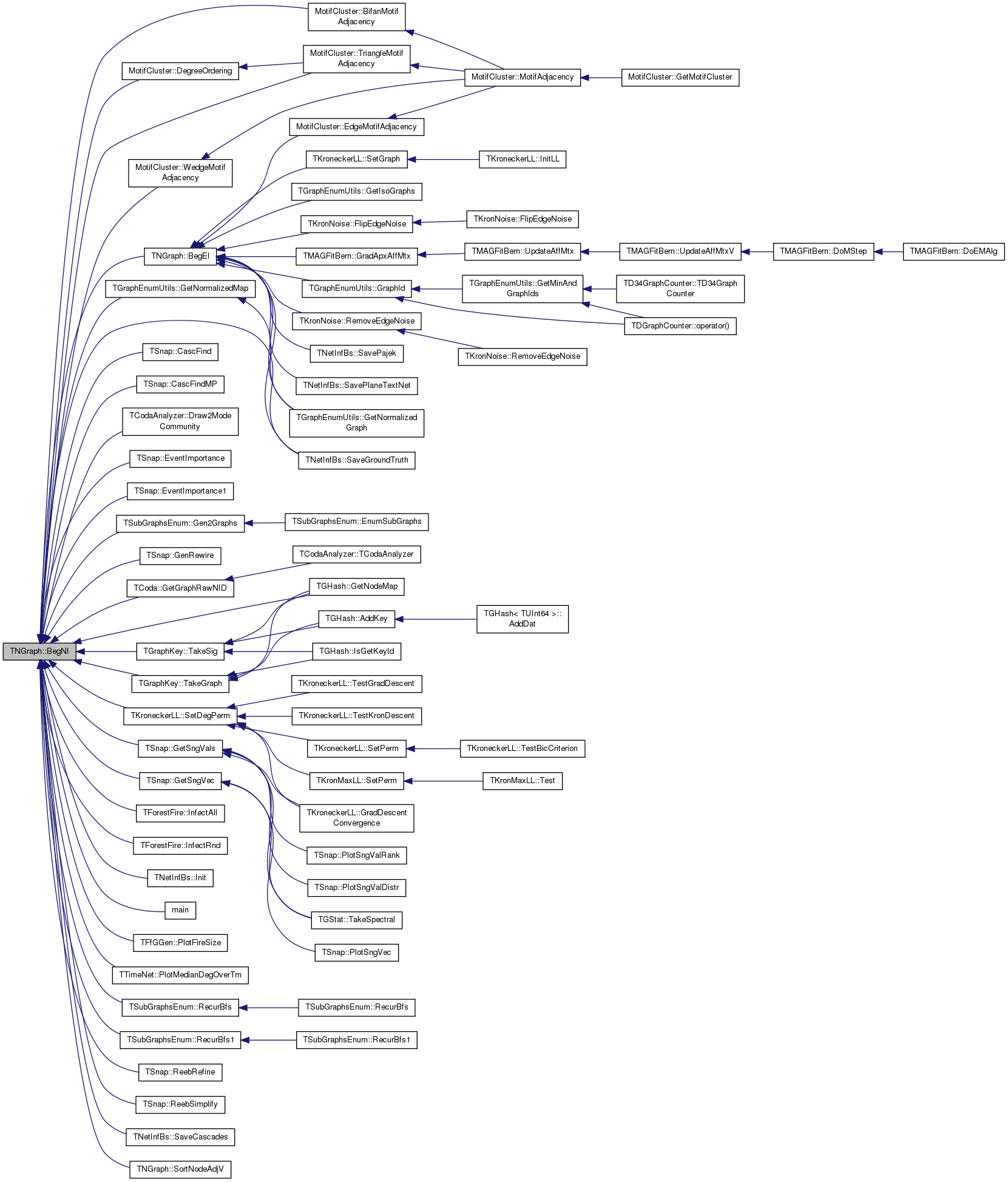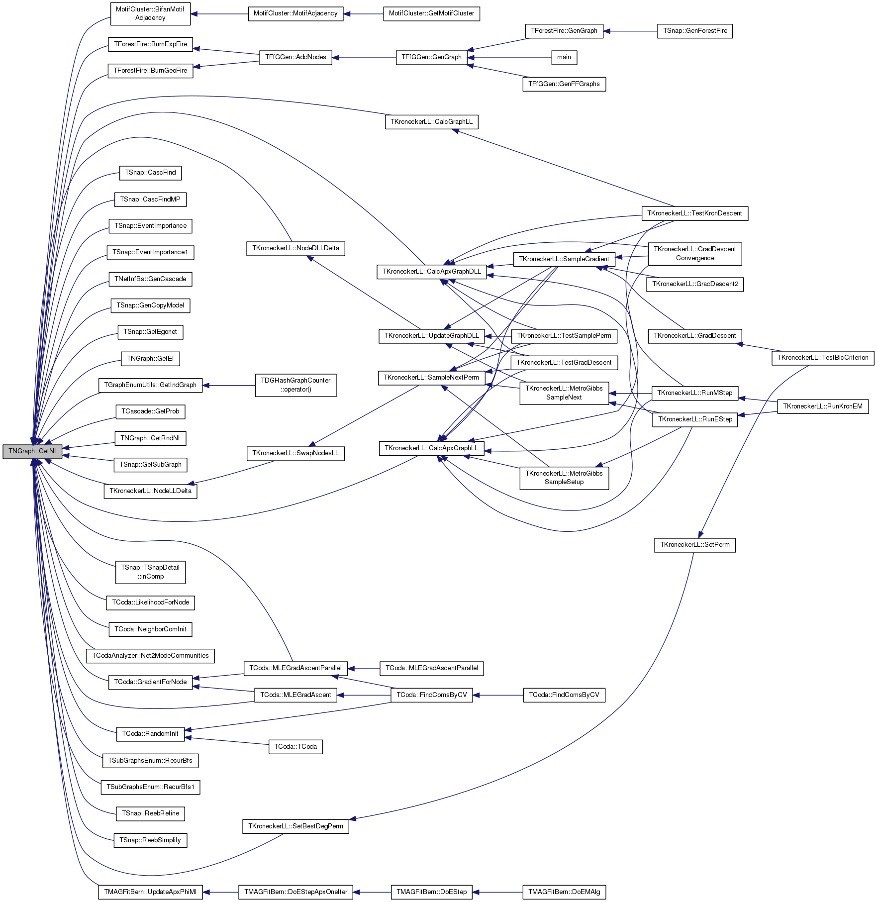 Referenced by MotifCluster::BifanMotifAdjacency(), TForestFire::BurnExpFire(), TForestFire::BurnGeoFire(), TKroneckerLL::CalcApxGraphDLL(), TKroneckerLL::CalcApxGraphLL(), TKroneckerLL::CalcGraphLL(), TSnap::CascFind(), TSnap::CascFindMP(), TSnap::EventImportance(), TSnap::EventImportance1(), TNetInfBs::GenCascade(), TSnap::GenCopyModel(), TSnap::GetEgonet(), GetEI(), TGraphEnumUtils::GetIndGraph(), TCascade::GetProb(), GetRndNI(), TSnap::GetSubGraph(), TCoda::GradientForNode(), TSnap::TSnapDetail::inComp(), TCoda::LikelihoodForNode(), TCoda::MLEGradAscent(), TCoda::MLEGradAscentParallel(), TCoda::NeighborComInit(), TCodaAnalyzer::Net2ModeCommunities(), TKroneckerLL::NodeDLLDelta(), TKroneckerLL::NodeLLDelta(), TCoda::RandomInit(), TSubGraphsEnum::RecurBfs(), TSubGraphsEnum::RecurBfs1(), TSnap::ReebRefine(), TSnap::ReebSimplify(), TKroneckerLL::SetBestDegPerm(), and TMAGFitBern::UpdateApxPhiMI().