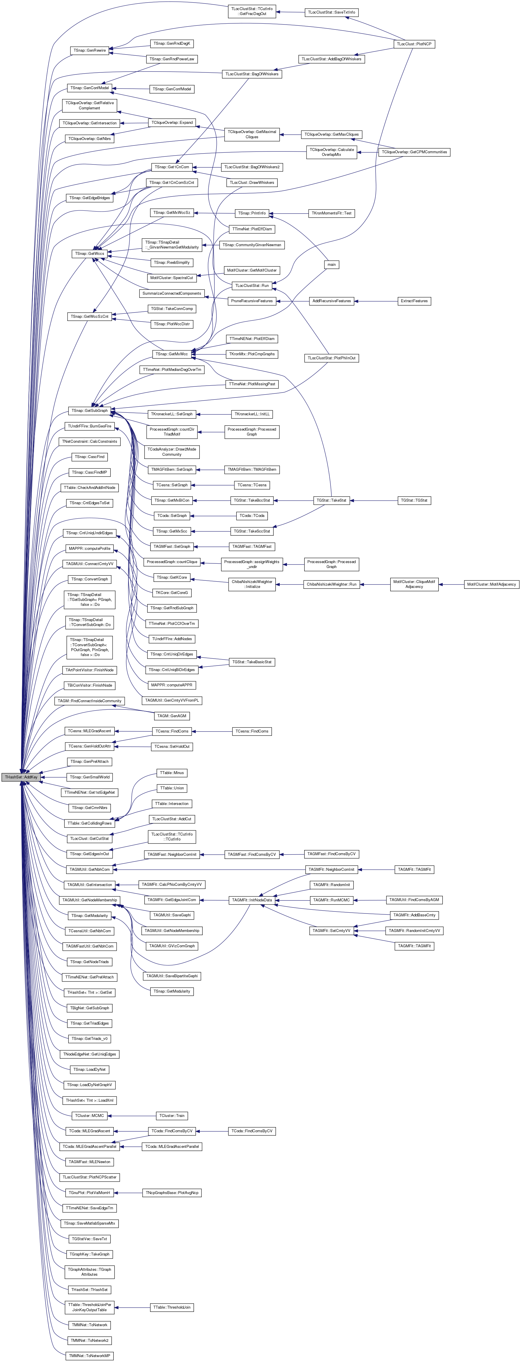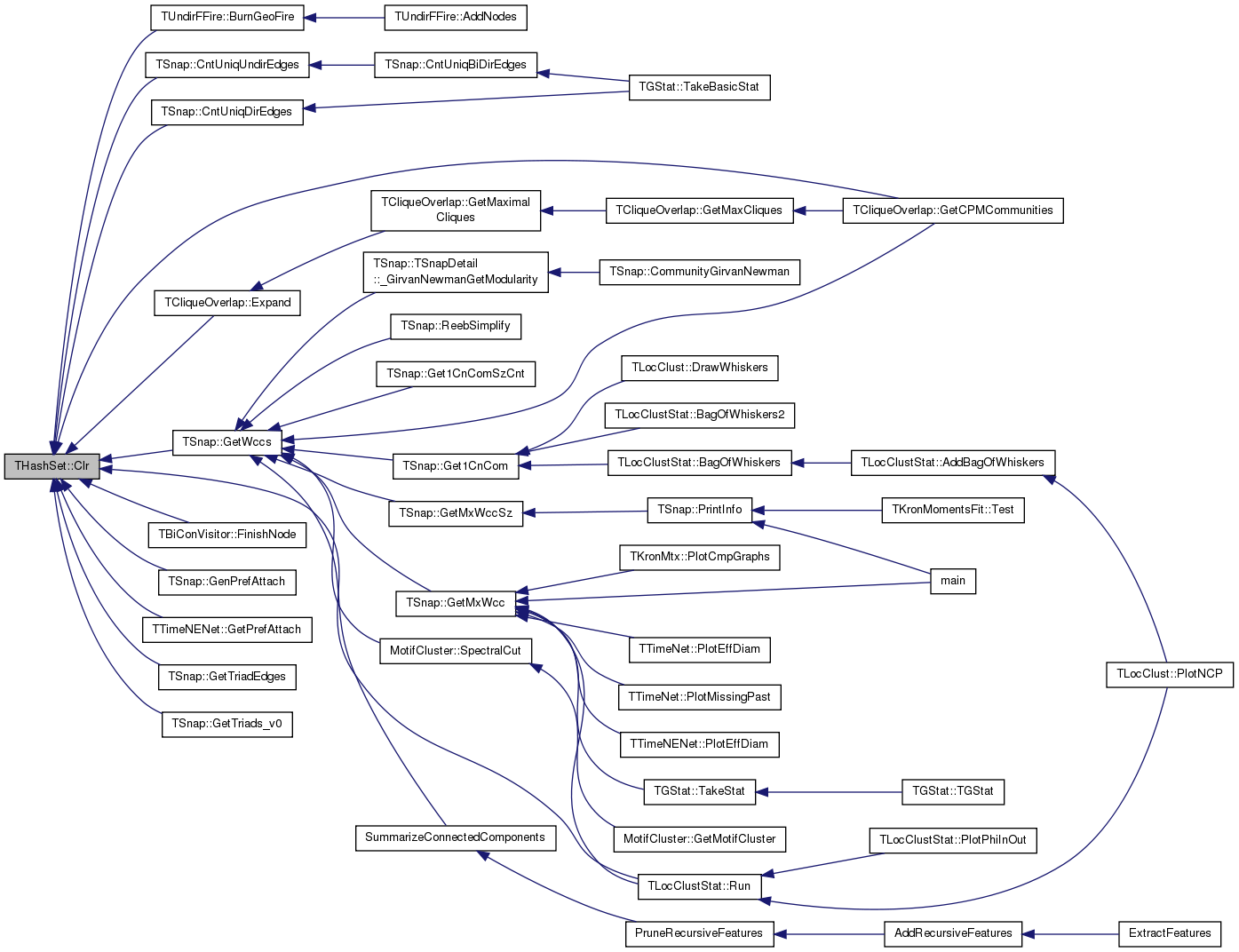 Referenced by TLocClustStat::BagOfWhiskers(), TUndirFFire::BurnGeoFire(), TNetConstraint< PGraph >::CalcConstraints(), TCliqueOverlap::CalculateOverlapMtx(), TSnap::CascFind(), TSnap::CascFindMP(), TTable::CheckAndAddIntNode(), TSnap::CntEdgesToSet(), TSnap::CntUniqDirEdges(), TSnap::CntUniqUndirEdges(), MAPPR::computeProfile(), TAGMUtil::ConnectCmtyVV(), TSnap::ConvertGraph(), TSnap::TSnapDetail::TGetSubGraph< PGraph, false >::Do(), TSnap::TSnapDetail::TConvertSubGraph< POutGraph, PInGraph, IsMultiGraph >::Do(), TSnap::TSnapDetail::TConvertSubGraph< POutGraph, PInGraph, false >::Do(), TArtPointVisitor::FinishNode(), TBiConVisitor::FinishNode(), TAGM::GenAGM(), TSnap::GenConfModel(), TCesna::GenHoldOutAttr(), TSnap::GenPrefAttach(), TSnap::GenRewire(), TSnap::GenSmallWorld(), TSnap::Get1CnCom(), TSnap::Get1CnComSzCnt(), TTimeNENet::Get1stEdgeNet(), TSnap::GetCmnNbrs(), TTable::GetCollidingRows(), TLocClust::GetCutStat(), TSnap::GetEdgeBridges(), TSnap::GetEdgesInOut(), TLocClustStat::TCutInfo::GetFracDegOut(), TCliqueOverlap::GetIntersection(), TAGMUtil::GetIntersection(), TCliqueOverlap::GetMaximalCliques(), TSnap::GetModularity(), TAGMUtil::GetNbhCom(), TCesnaUtil::GetNbhCom(), TAGMFastUtil::GetNbhCom(), TCliqueOverlap::GetNbrs(), TAGMUtil::GetNodeMembership(), TSnap::GetNodeTriads(), TTimeNENet::GetPrefAttach(), TCliqueOverlap::GetRelativeComplement(), THashSet< TInt >::GetSet(), TSnap::GetSubGraph(), TBigNet< TNodeData, IsDir >::GetSubGraph(), TSnap::GetTriadEdges(), TSnap::GetTriads_v0(), TNodeEdgeNet< TNodeData, TEdgeData >::GetUniqEdges(), TSnap::GetWccs(), TSnap::GetWccSzCnt(), TSnap::LoadDyNet(), TSnap::LoadDyNetGraphV(), THashSet< TInt >::LoadXml(), TCluster::MCMC(), TCoda::MLEGradAscent(), TCesna::MLEGradAscent(), TCoda::MLEGradAscentParallel(), TAGMFast::MLENewton(), TLocClustStat::PlotNCPScatter(), TGnuPlot::PlotValMomH(), TAGM::RndConnectInsideCommunity(), TLocClustStat::Run(), TTimeNENet::SaveEdgeTm(), TSnap::SaveMatlabSparseMtx(), TGStatVec::SaveTxt(), TGraphKey::TakeGraph(), TGraphAttributes::TGraphAttributes(), THashSet< TKey, THashFunc >::THashSet(), TTable::ThresholdJoinPerJoinKeyOutputTable(), TMMNet::ToNetwork(), TMMNet::ToNetwork2(), and TMMNet::ToNetworkMP().