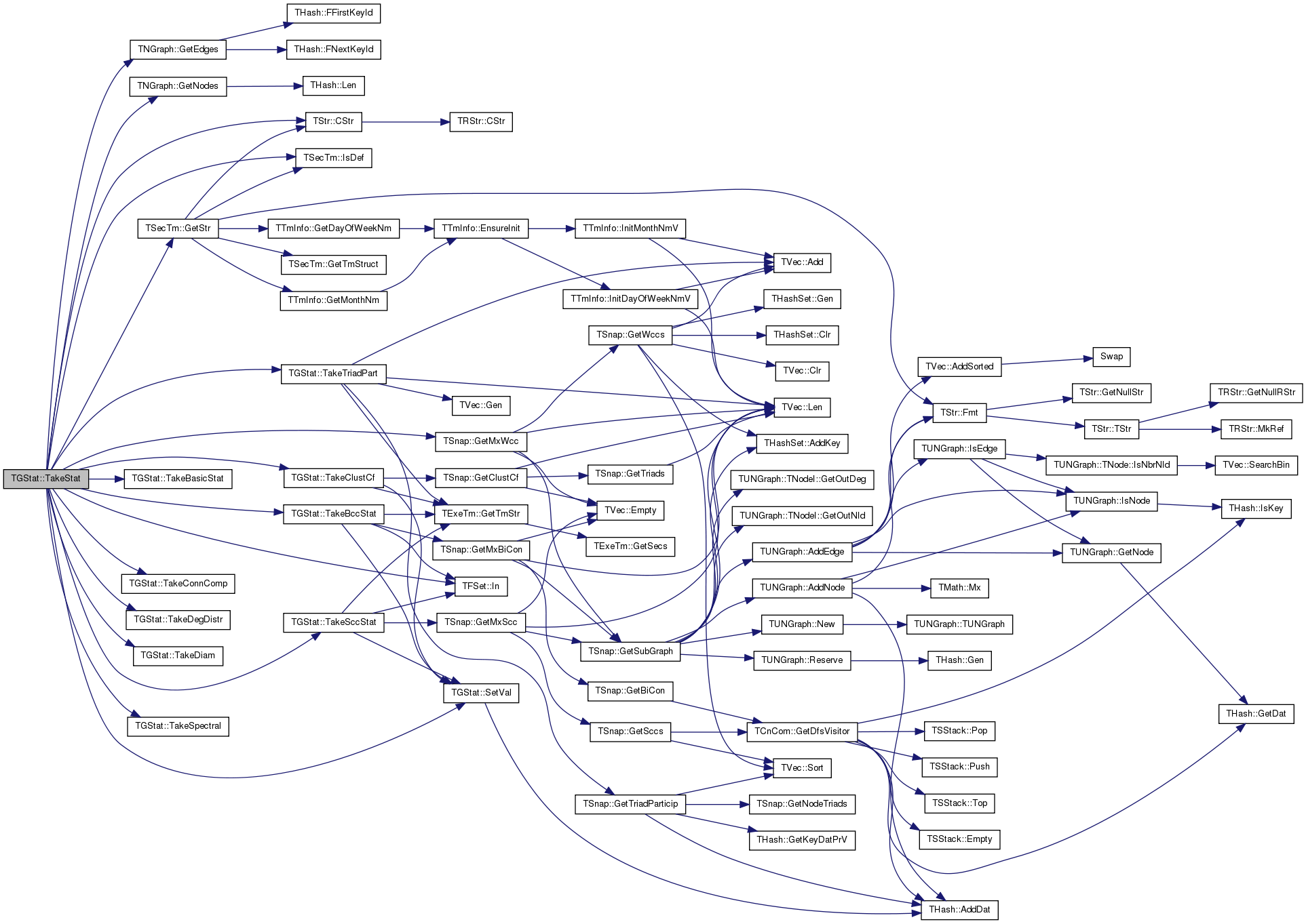 | void | TakeStat (const PNGraph &Graph, const TSecTm &Time, TFSet StatFSet, const TStr &GraphName) |