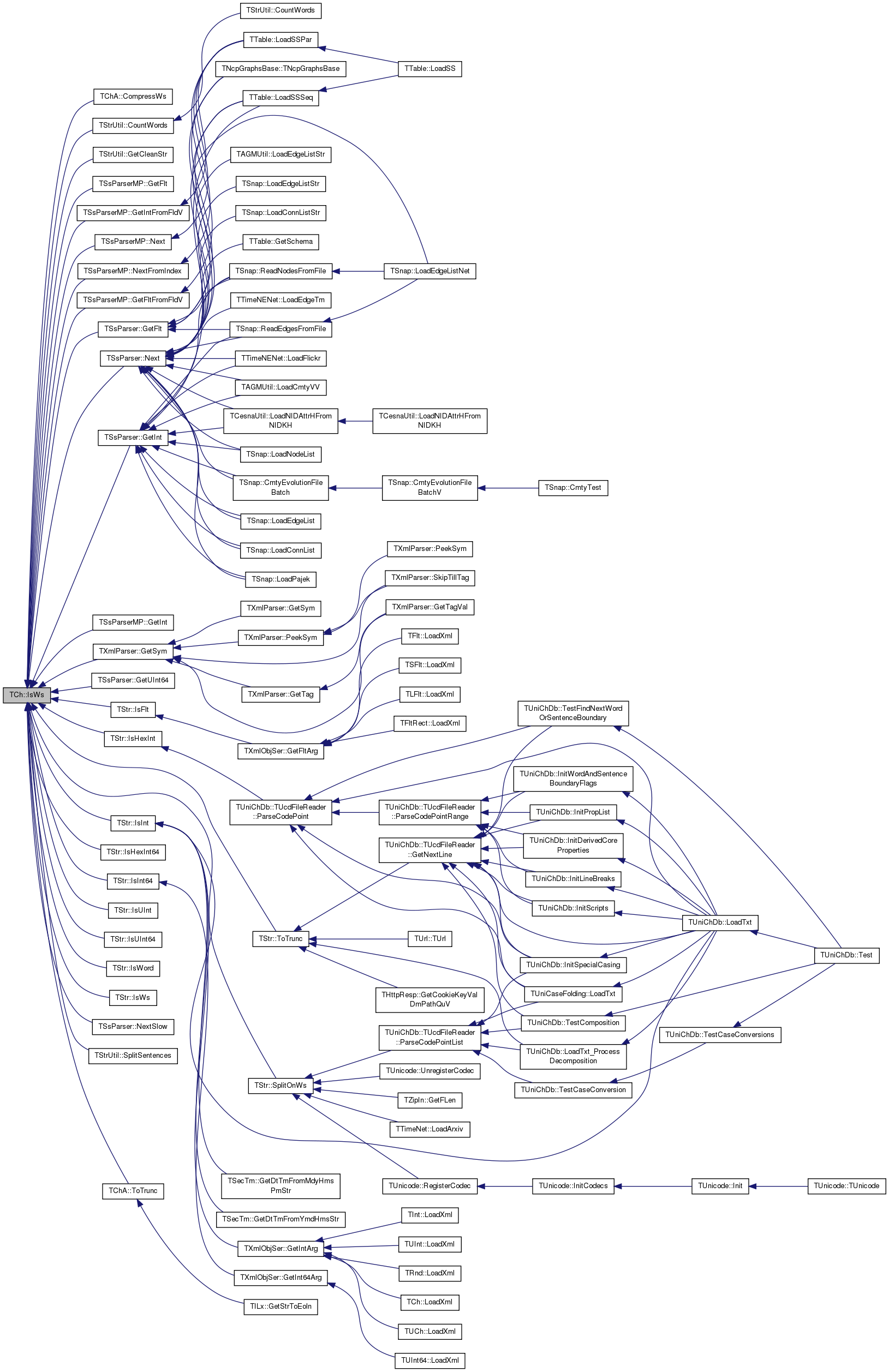 Referenced by TChA::CompressWs(), TStrUtil::CountWords(), TStrUtil::GetCleanStr(), TSsParserMP::GetFlt(), TSsParser::GetFlt(), TSsParserMP::GetFltFromFldV(), TSsParserMP::GetInt(), TSsParser::GetInt(), TSsParserMP::GetIntFromFldV(), TXmlParser::GetSym(), TSsParser::GetUInt64(), TStr::IsFlt(), TStr::IsHexInt(), TStr::IsHexInt64(), TStr::IsInt(), TStr::IsInt64(), TStr::IsUInt(), TStr::IsUInt64(), TStr::IsWord(), TStr::IsWs(), TSsParserMP::Next(), TSsParser::Next(), TSsParserMP::NextFromIndex(), TSsParser::NextSlow(), TStr::SplitOnWs(), TStrUtil::SplitSentences(), TChA::ToTrunc(), and TStr::ToTrunc().